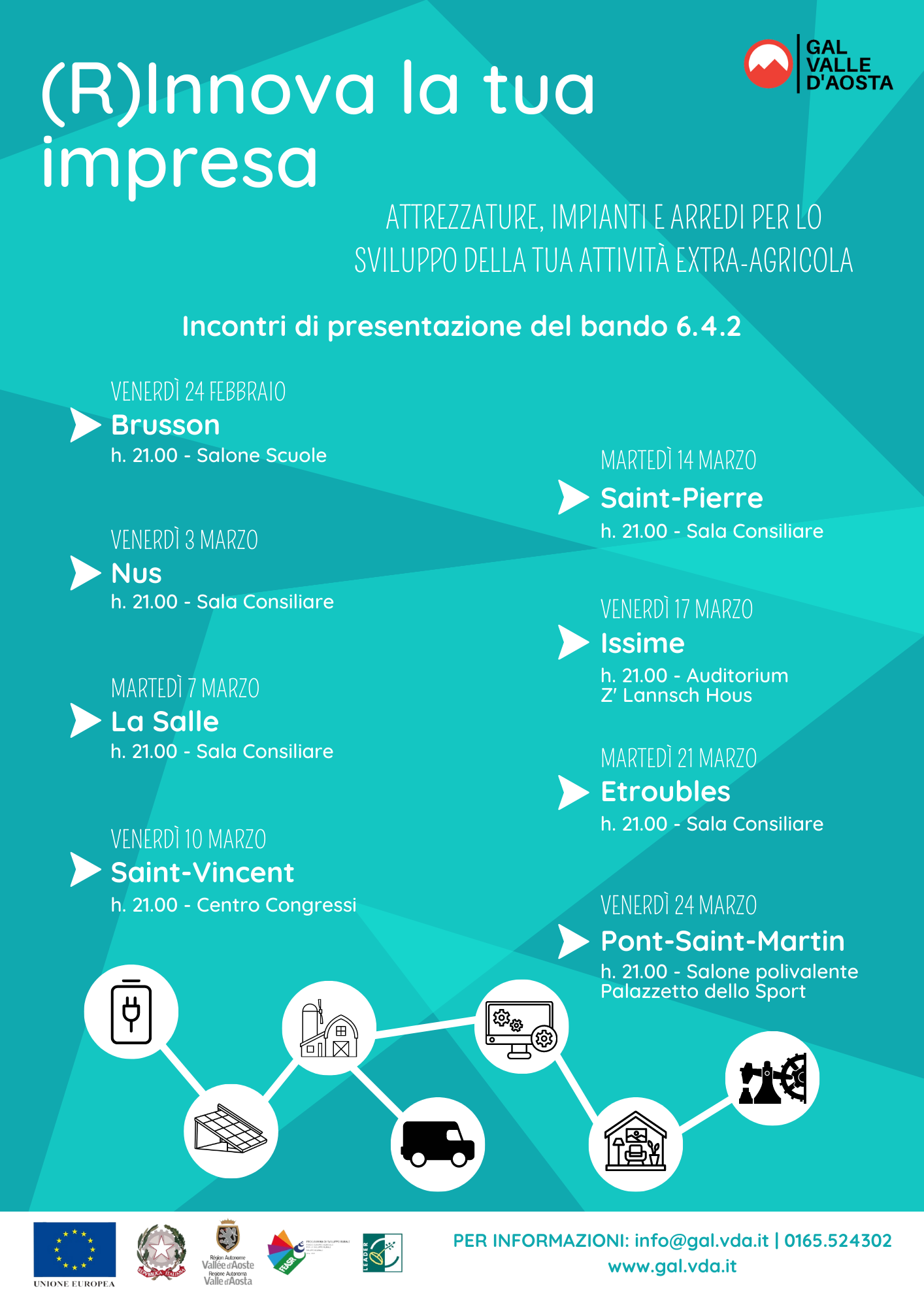 Per maggiori informazioni visita il sito o contatta l’ufficio del GAL allo 0165-524302 o tramite mail a info@gal.vda.it,