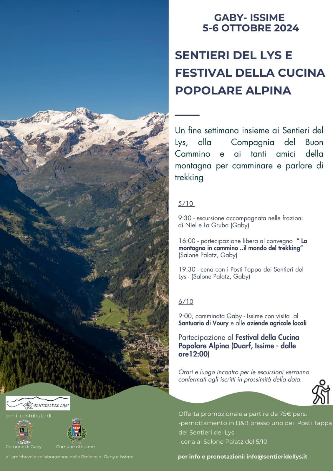 La rete Sentieri del Lys propone per sabato 5 e domenica 6 ottobre un weekend all’insegna del trekking e della cucina tradizionale di montagna!