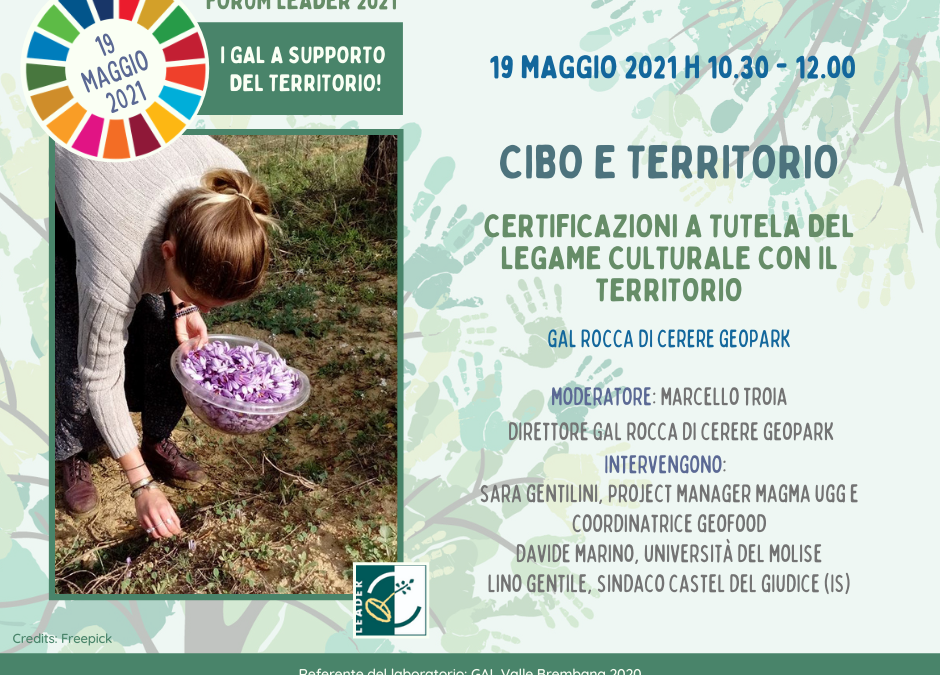 Si svolgerà mercoledì 19 maggio 2021, dalle ore 10.30 alle 12.00, il webinar “Cibo e territorio: certificazioni a tutela del legame culturale con il territorio” .
