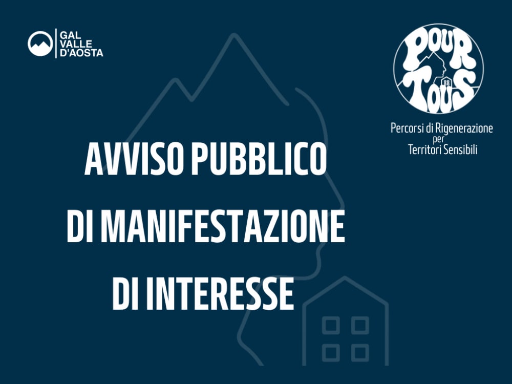 Il GAL Valle d’Aosta indice un avviso pubblico di manifestazione di interesse al percorso di accompagnamento “PouR TouS: Percorsi di Rigenerazione per Territori Sensibili”, promosso in collaborazione con il Centro...